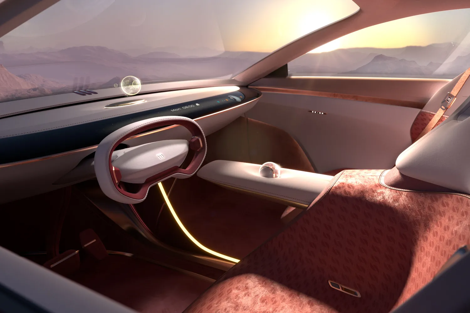 Es como si Buick hubiese dicho: “mira, total, esto no se va a fabricar, así que vamos a ponerle todo lo que se nos ocurra”. Y vaya si lo han hecho. Brocados en la tapicería, molduras de cristal, colores que parecen sacados de una colección de IKEA pija… un festival de exceso que no tiene ningún sentido práctico, pero que cumple su función: que hablemos de él.