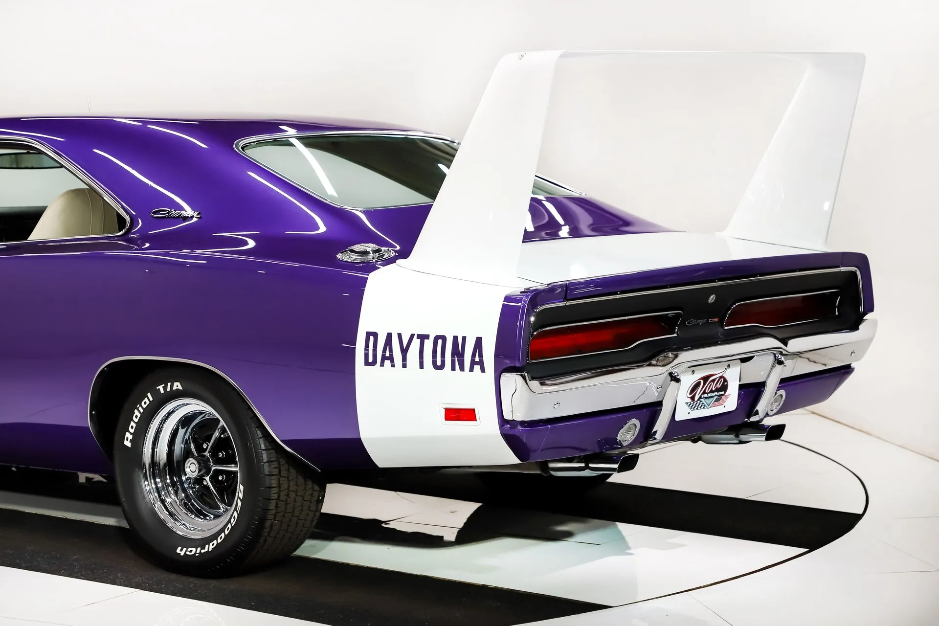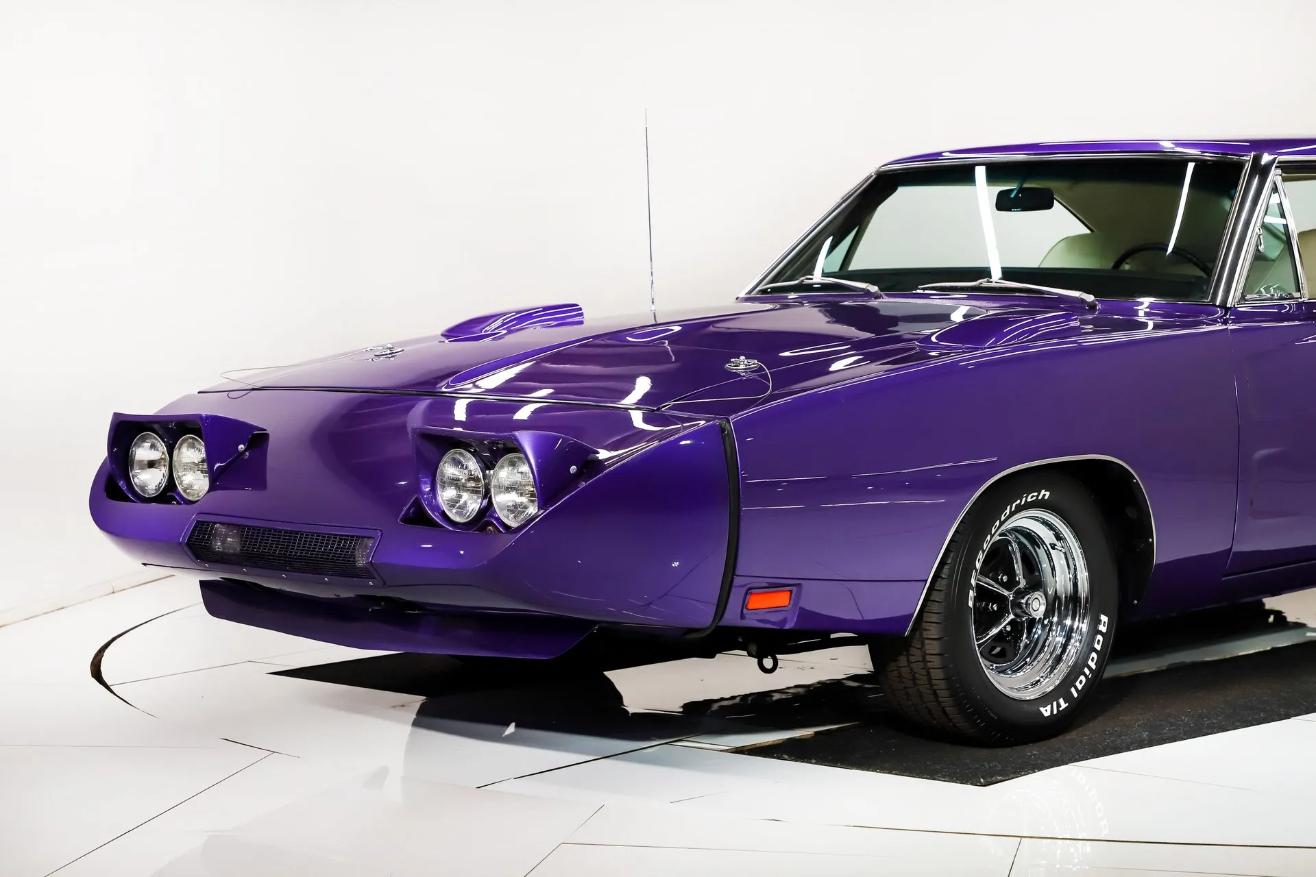 Un asunto de coincidencias. Bueno, no. Si algo se necesitaba para que la propia Chrysler vendiera una de las 503 unidades originales existentes del Dodge Charger Daytona R/T 1969 con el acabado exterior Plum Crazy, era que la tonalidad en cuestión se ofreciera por Dodge antes de 1970. Al respecto, a este histórico púrpura sí lo vimos en uno de esos siete Last Call lanzados en 2023, pero en la reversión homenaje al Charger Super Bee 1971. En otras palabras, no existió por las vías oficiales un Daytona en Plum Crazy y es por eso que este ejemplar asume una responsabilidad y adquiere una trascendencia únicas.