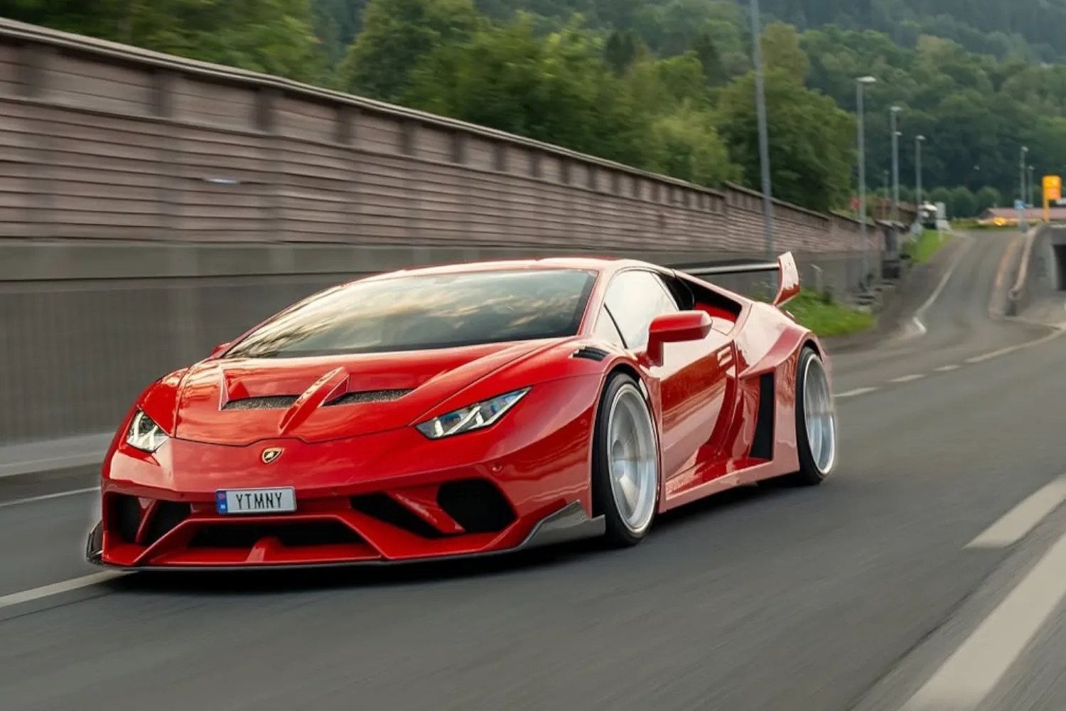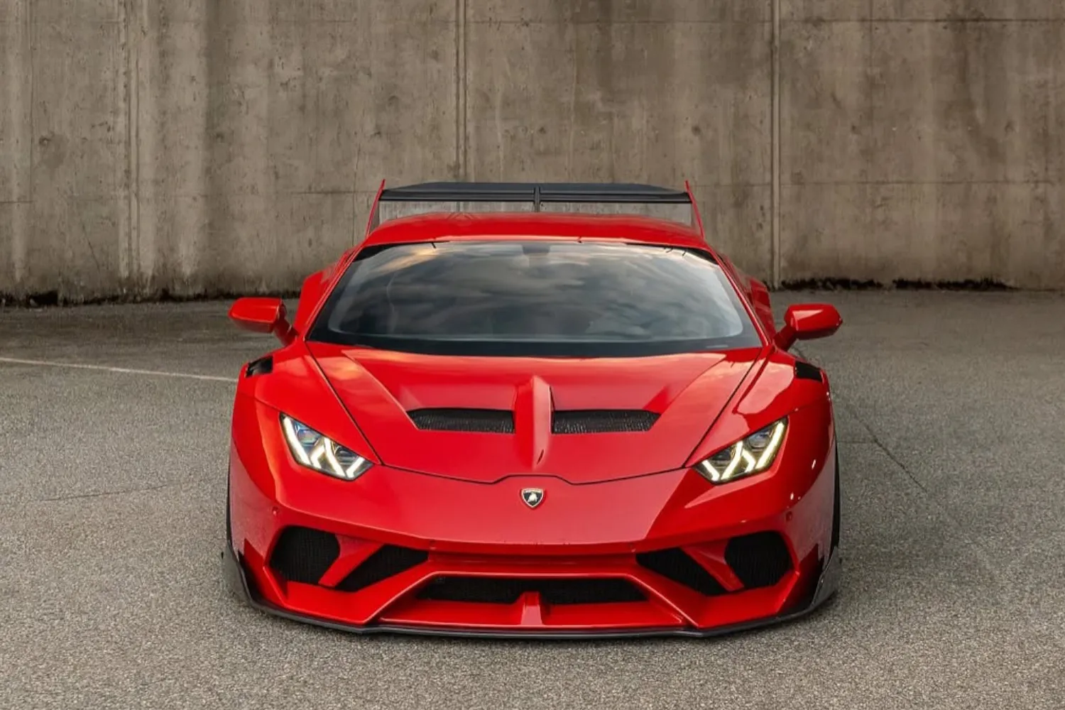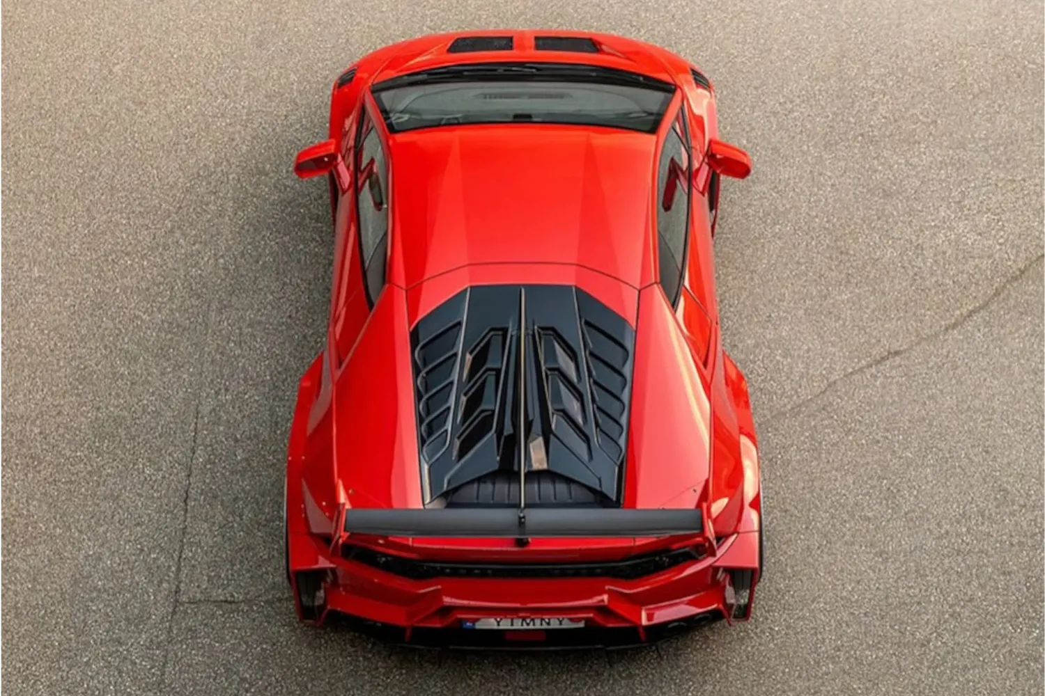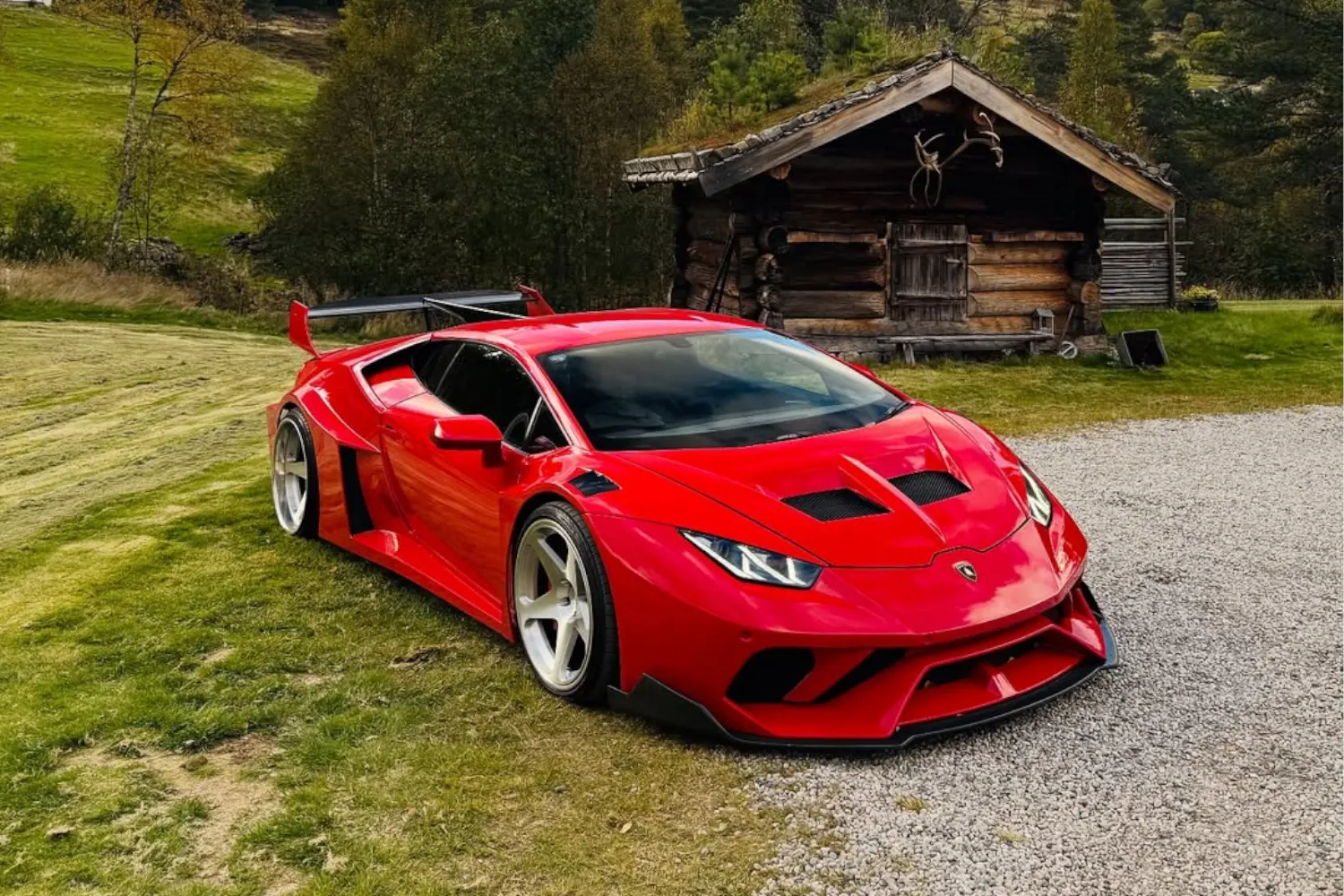Lo primero que llama la atención es la anchura descomunal. Las aletas parecen esculpidas con rabia mediante un machete y una foto de Star Wars como referencia, los pasos de rueda casi rozan el suelo y el conjunto recuerda a aquellas transformaciones radicales que hacían los preparadores japoneses o alemanes en los años de gloria del tuning más artesanal antes de que las regulaciones y la burocracia metiesen las zarpas. Pero aquí hay coherencia estética porque todo el coche parece una versión paralela del Huracán que Lamborghini nunca se atrevió a fabricar.
